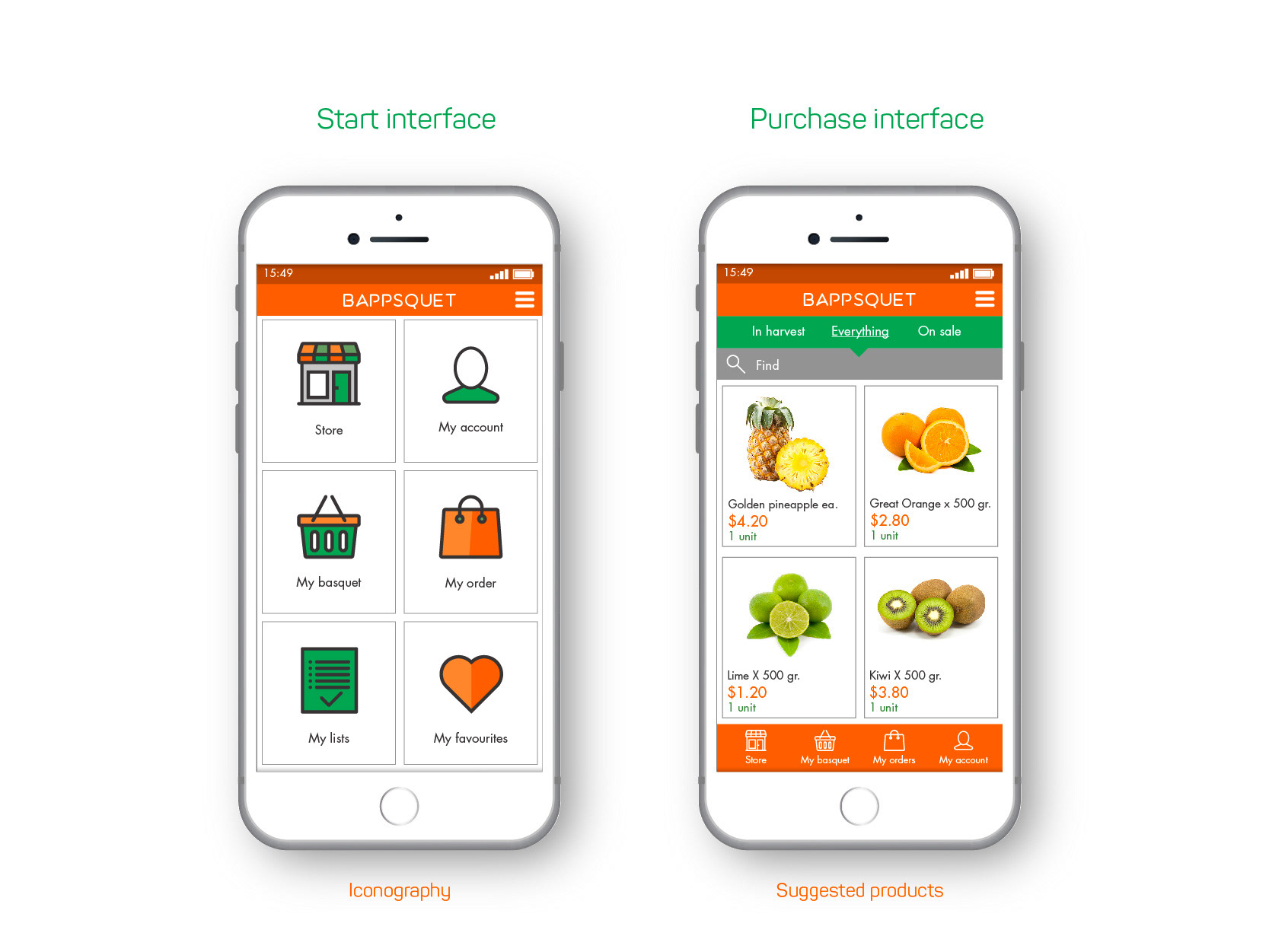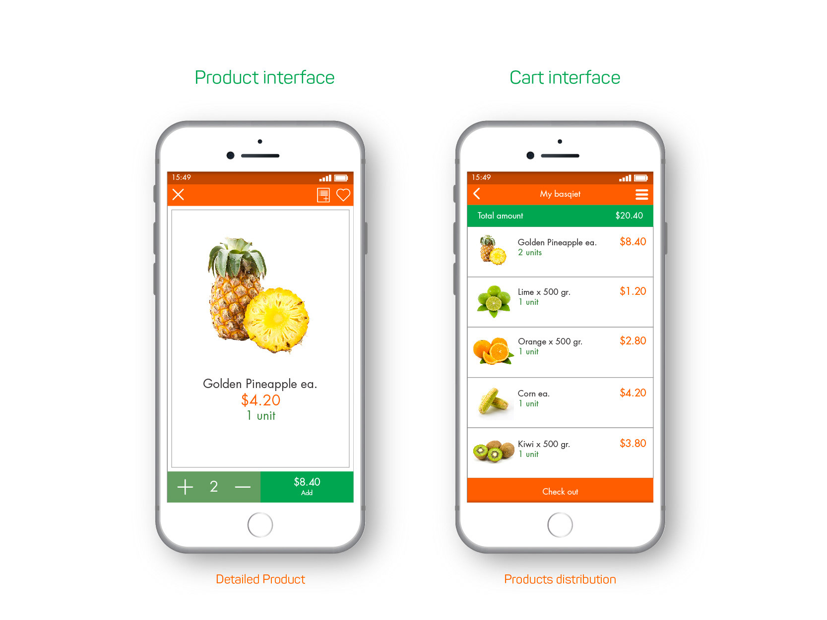 UX and UI design for e-commerce application focused on fruit and vegetables to delivery.